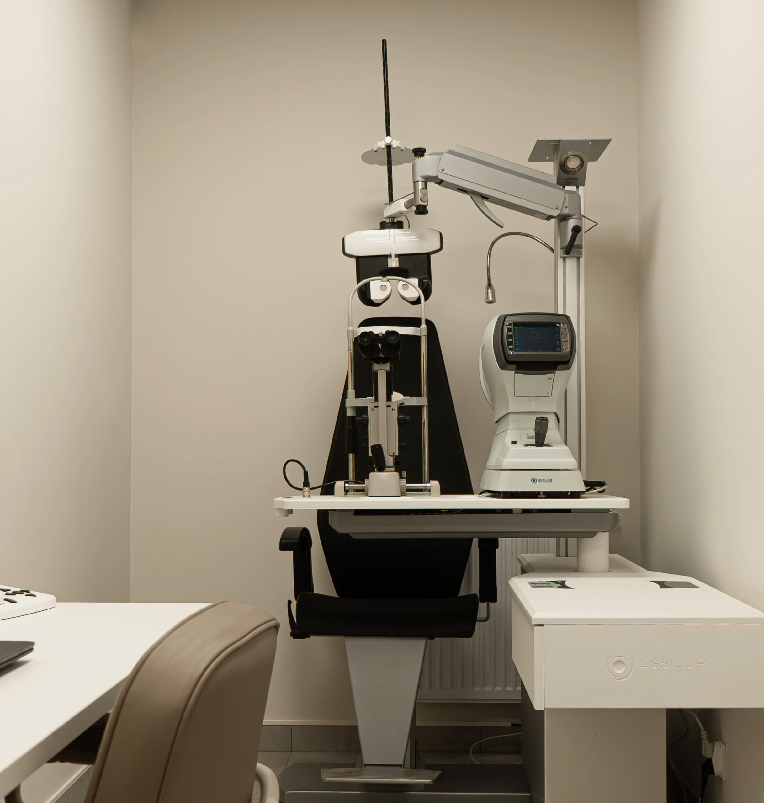 Twój komfort i dokładność badania to dla nas priorytet, dlatego nasz gabinet wyposażyliśmy w cyfrowe i zautomatyzowane urządzenia firmy Essilor – światowego lidera w technologiach dla optyki.